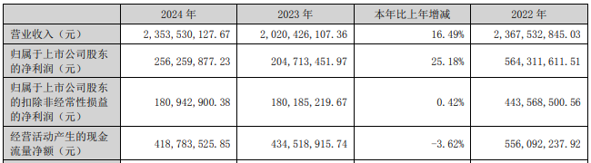 2024年,星宸科技营业收入为23.54亿元,同比增长16.49%;归属于上市公司股东的净利润为2.56亿元,同比增长25.18%;归属于上市公司股东的扣除非经常性损益的净利润为1.81亿元,同比增长0.42%。
