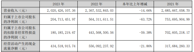 2023年,星宸科技营业收入为20.20亿元,同比下降14.66%;归属于上市公司股东的净利润为2.05亿元,同比下降63.72%;归属于上市公司股东的扣除非经常性损益的净利润为1.80亿元,同比下降59.38%。