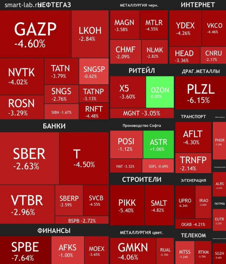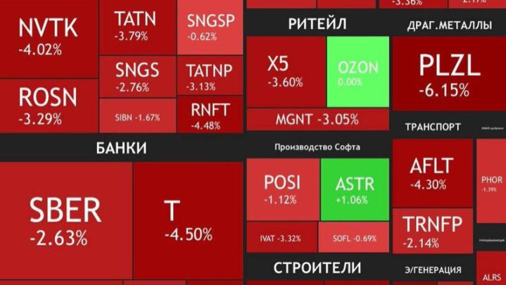 俄罗斯市场对特朗普与普京会晤准备工作停止的消息做出反应,股价下跌。